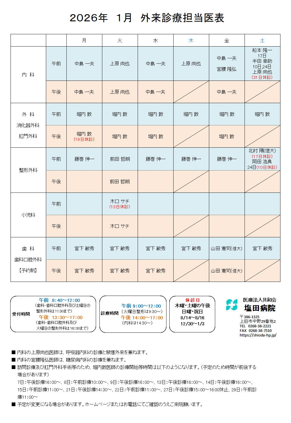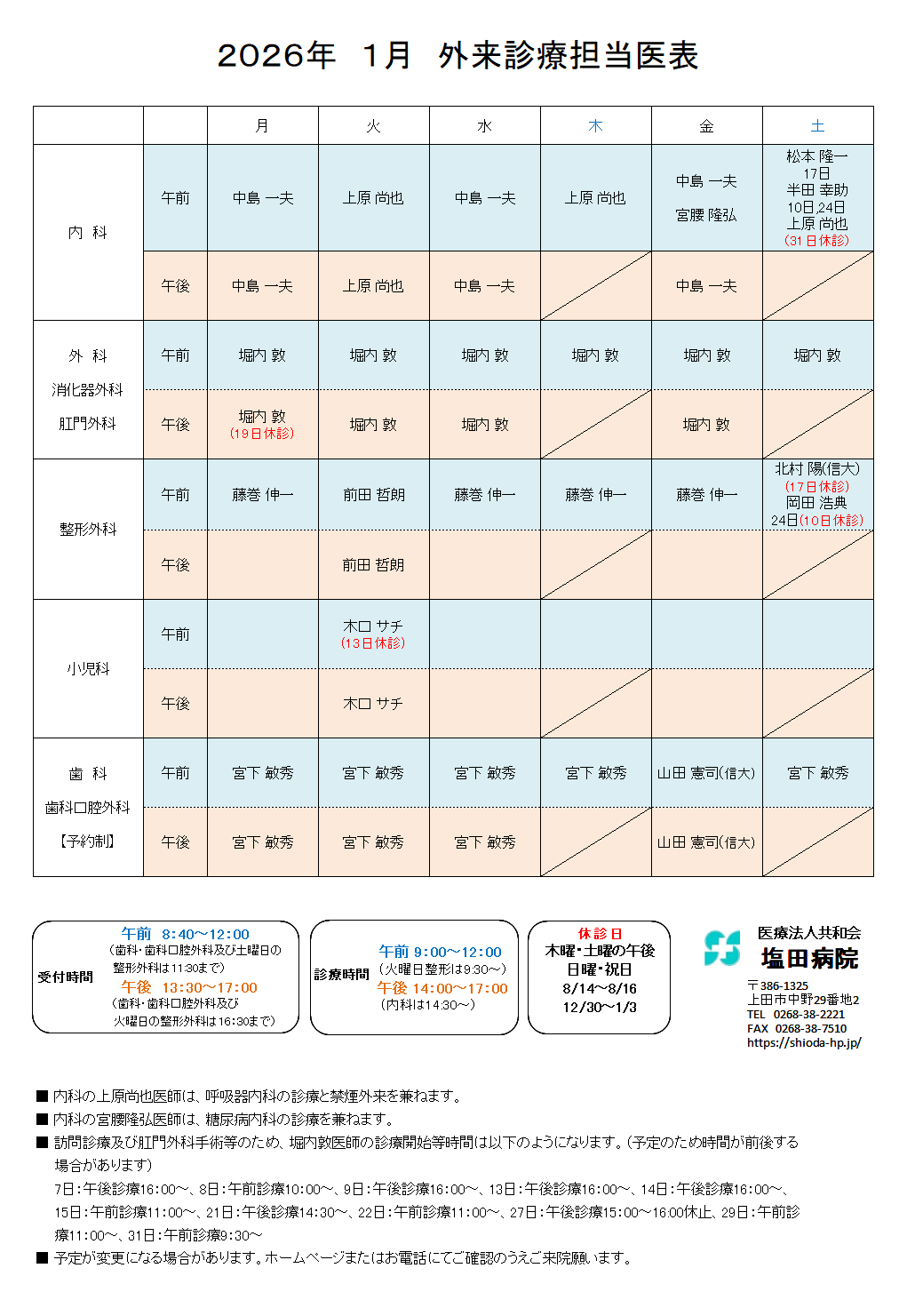 休診 / 木曜午後・土曜午後・日祝