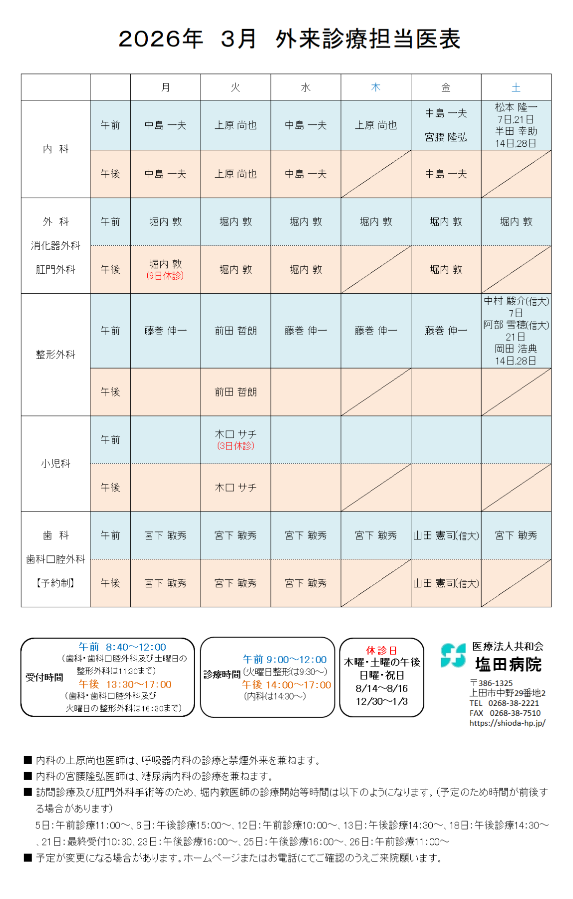 午前 9:00〜12:00 / 午後 14:00〜17:00